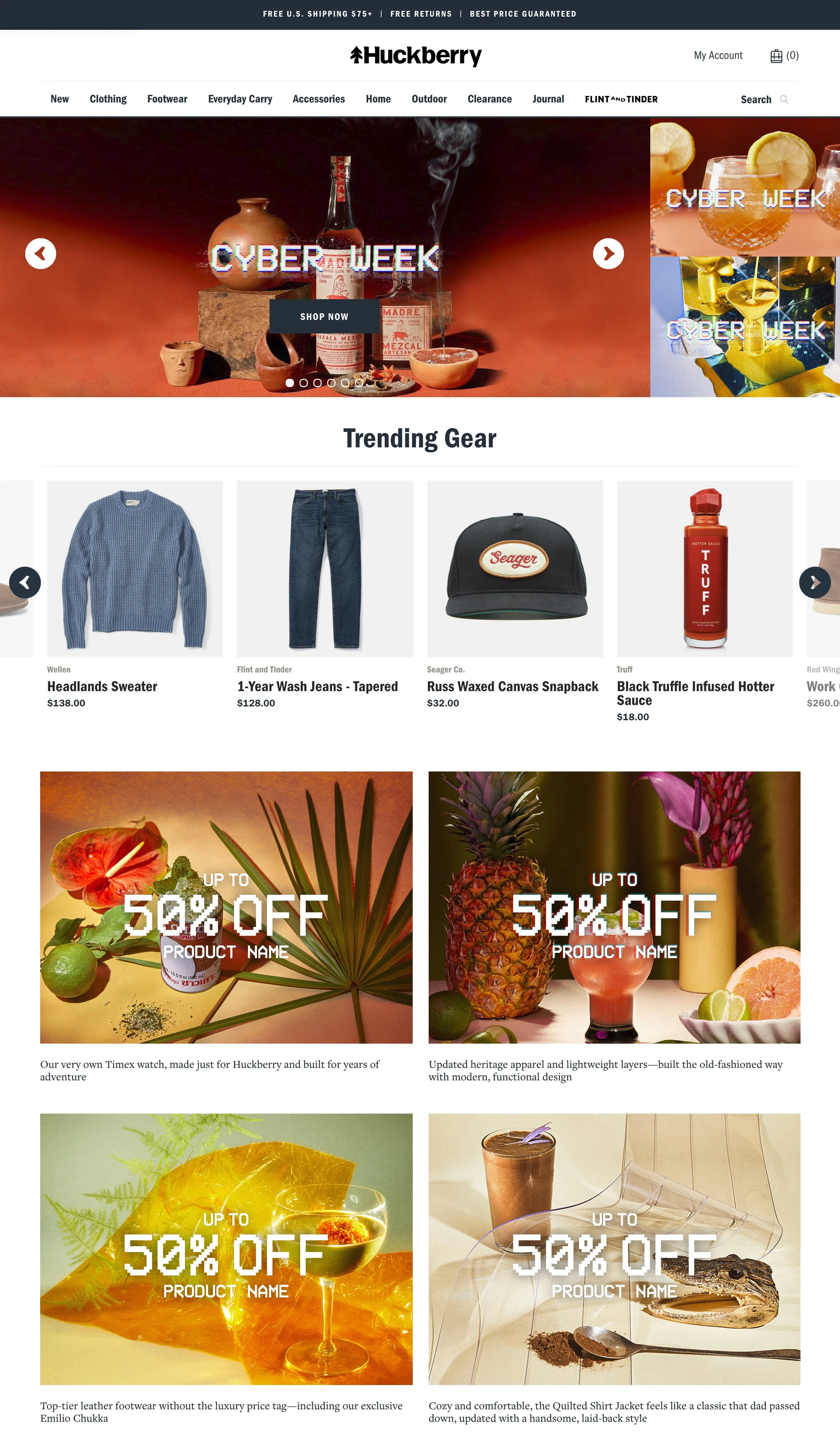 Where outdoor gear meets everyday style. Huckberry outfits the dude who's not afraid to splurge on quality gear that makes his buddies jealous. As Design Director, I spearheaded visually stunning campaigns for email, web, and affiliates. The result? Over a million stoked guys equipped and inspired for their next adventure.